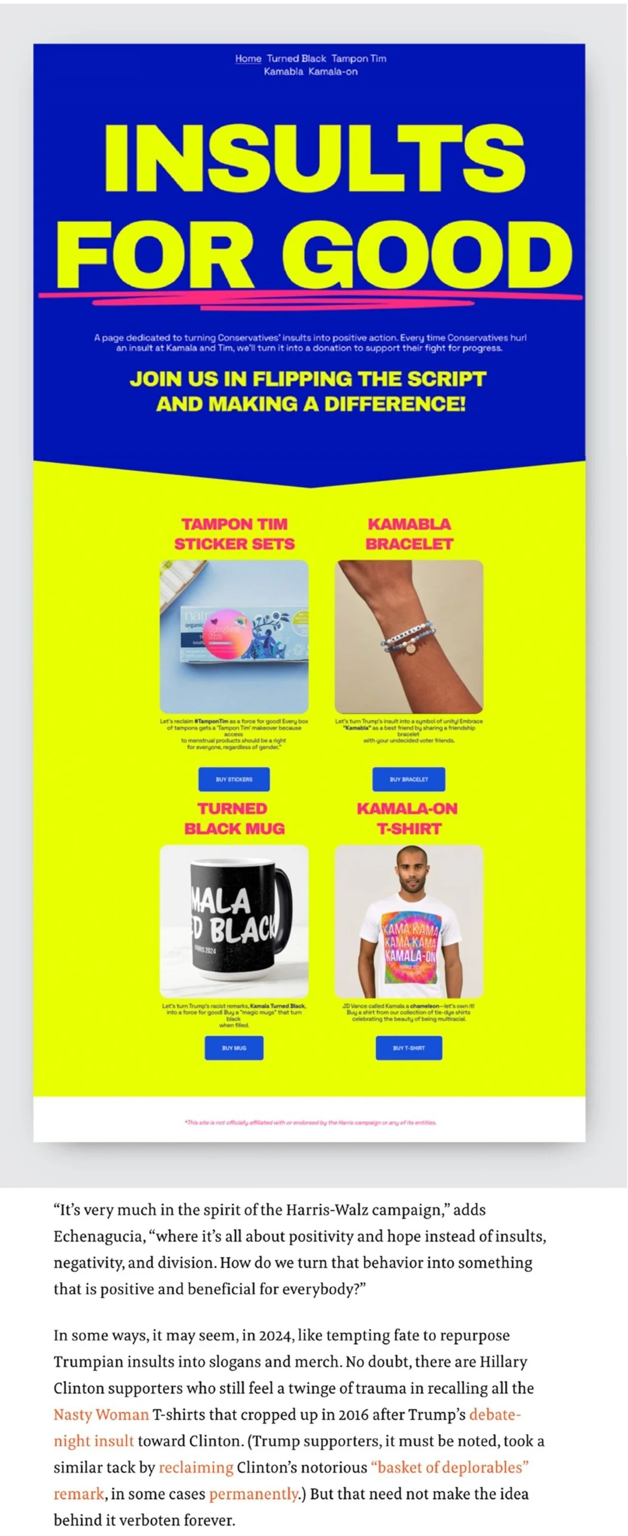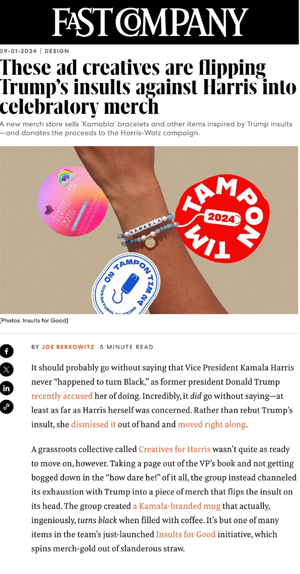 We wanted to contribute to the Harris-Walz campaign in a meaningful way, but rather than fueling negative discourse, we chose to focus on positivity. We decided to turn insults into an opportunity by transforming them into donations, demonstrating how each insult only strengthens the campaign’s commitment to fighting for democracy.